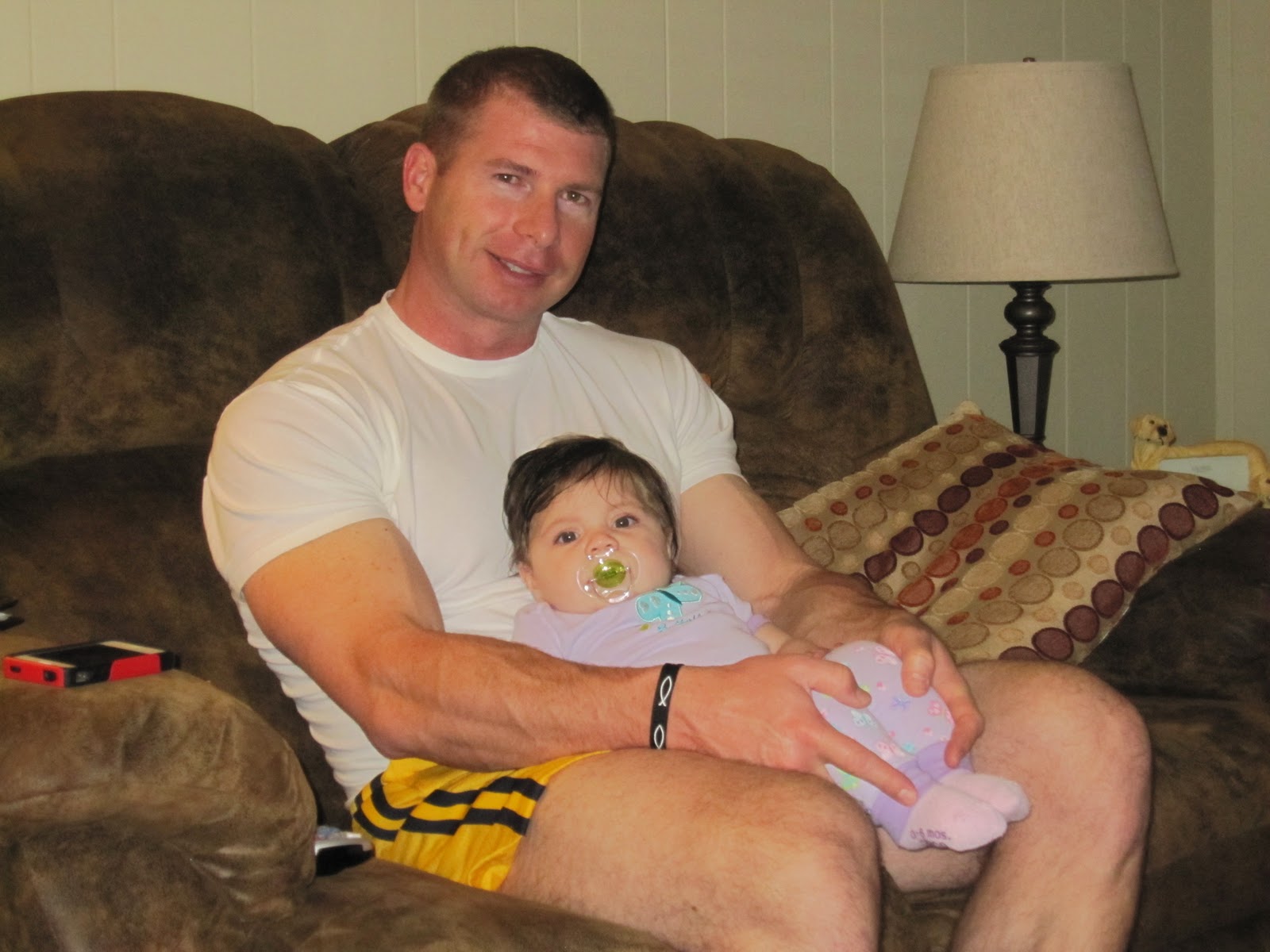 And these were taken tonight before bedtime. Kevin was showing Kate what leg extensions and leg curls were. I'm not really surprised. I have a feeling that I'll be teaching her the A-B-C's and he'll be teaching her all of the major muscle groups.